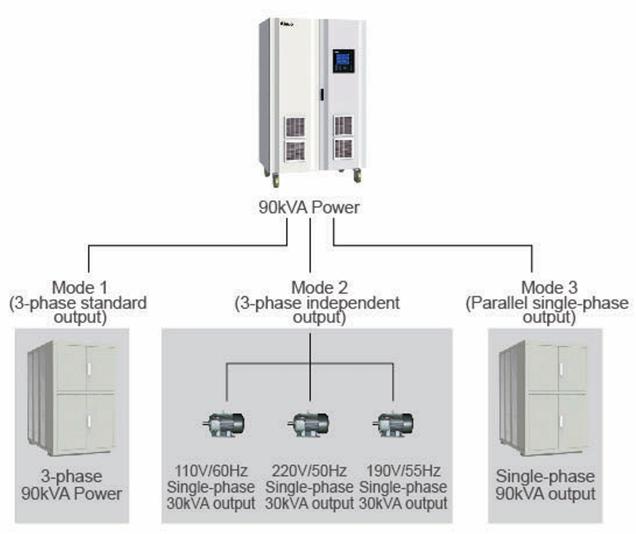 ■ 선택형 출력 모드 (표준 삼상 출력, 삼상 독립 제어 출력, 단상 출력)