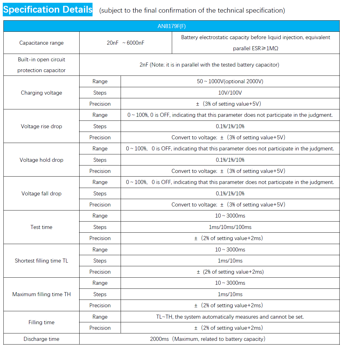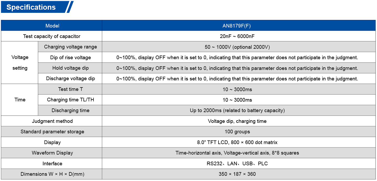 AN8179F(F) Series는 리튬 배터리 셀의 시험을 위한 시험기로 빠른 시험, 높은 고장 감지율, 낮은 고장점 손상 및 선명한 결과 표시가 특징입니다.